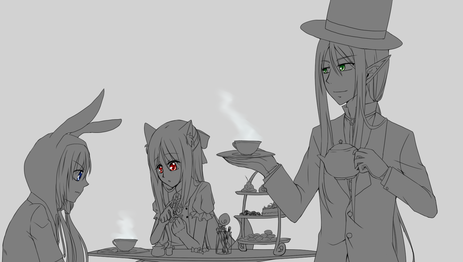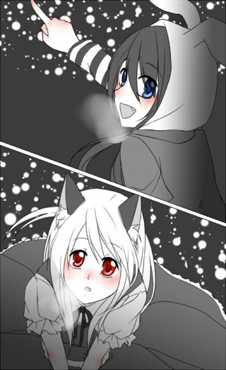 2011/01/01 Category : 隨身手札 不思議遊樂園 咏的4歲生日活動文。 詳情請見野生家 扯到愛麗絲腦中的旋轉木馬就會自動轉起來 描述風格變的有點奇怪,應該是還在看的懂的範圍內 那麼請用輕鬆的心情閱讀這篇吧★ 遲遲畫不完預定的圖,這篇壓太久都跨年啦!! 決定還是趕快放出來,祝大家百年快樂。 - 愛麗絲有些期待的踏著青草皮,循著不明顯但確實是"某種生物"經過留下的道路前進,懷裡抱著精心包裝好的禮物,最後停在一扇窗前,對小小的愛麗絲來說這扇窗戶太大了,根本沒有足夠的力氣推動,窗戶的另一側被布覆蓋無法看透,玻璃映照著自己的身影,就在舉手想敲窗通知時,身後出現一位有長長的兔耳的人 「歡迎光臨,我是擔任導遊的白兔子唷。」 「白兔子...?」 「你看,帽子上有兔子的耳朵!」 「嗯,很可愛,導遊是...?」 「因為裡面佈置成遊樂園了,所以由我來帶路。」 「拜託螢了。」 白兔子與愛麗絲手牽手準備前往夢幻的遊樂園,白兔子對著緊閉的窗戶喊出魔法咒語 「芝麻開門─★」 窗戶自動的開了一條小縫,但是前方卻是陡峭的斜坡,白兔坐上專屬的交通工具要愛麗絲也坐上來,確認愛麗絲安全後白兔用力一蹬,航向星光大道的專車就出發了 「快點快點,看上面!」 「...是星星...!」 「很漂亮吧~~。」 白兔開心的笑聲伴隨著風吹過,愛麗絲想悠的欣賞星空卻沒辦法,因為專車很快就停下來了,出現眼前的是由樹叢組成的圍籬,昏暗的燈光下看不出是什麼植物,空氣中充滿植物特有的味道 「這裡是花園迷宮喔,要小心不要走散了。」 「嗯。」 「另外這個是邀請函。」 「....印章?」 「要集滿5個印章才能打開通往目的地的路,一起加油吧。」 於是白兔與愛麗絲就這樣進入了這座深迷宮,路上不時停下來欣賞樹叢間的花朵,穿過狹窄的、闊的,需要爬上去,或是跳過去的迷宮難關後,終於抵達第一個印章所在的地方,戴著高禮帽的男人正優雅的準備下午茶,潔白的桌面上擺滿各式各樣的點心 「歡迎光臨,這裡要玩的是很簡單的小遊戲,要過關才能蓋印章。」 「能參加遊戲的就只有咏,不過可以幫忙提示,有需要要跟我說喔!!」 「嗯嗯、謝謝你。」 「這關玩的是智慧環。」 帽子商拿出奇妙形狀的鐵環,愛麗絲在白兔的聲援下開始挑戰 「唔...啊..汪啊..。」 「...這樣?」 「嗯嗯嗯。」 「看起來螢比咏還緊張,喝杯茶休息一下?」 「...再一下。」 「就差一點點...啊、解開了!」 得到第一個印章與獎勵的點心後,白兔與愛麗絲邊走邊吃著甜甜圈朝下一個地點前進 「慢死了~~~是要我等多久啊。」 坐在枯木上一臉不耐煩的臭臉貓(咦)打著呵欠,看起來毫無幹勁,在白兔催促下終於甩甩尾巴跳了下來,臭臉貓抓抓頸後的頭髮回想自己的任務 「...唔、玩疊疊樂,如果是我或是螢弄倒的話就算你過關了。」 「這關我跟咏是敵人了,不會放水的唷!」 「我會加油的。」 將散落的木塊堆疊成一座塔後,遊戲就正式開始了,先攻是臭臉貓,次鋒是愛麗絲,最後是由白兔進攻,在回合數進入十位數時,塔也疊的相當高了,最下層十字交叉的木塊看起來隨時都會傾斜倒塌,那個弄倒塔的犧牲者究竟是誰呢!! 「................。」 「嗚~~~~~。」 臭臉貓的手在碰觸木塊前停住,雖然對遊戲沒有興趣但還是認真的玩了,因為他討厭輸! 目前的高度雖然有危險但還可以渡過,只是一旁那熱切的視線讓危險度加不少,嘆氣重新調整狀況後臭臉貓抓住了目標木塊準備抽出,移動時有些搖晃的塔讓白兔緊張的不敢移開視線,於是耐不住性子的臭臉貓就這樣戰敗了,愛麗絲順利的得到第二個印章 「下一關會有點冷,所以要披上這個喔。」 「螢不用?」 「我似乎很耐寒,所以只要穿外套就好了。」 披上毛絨絨披風的愛麗絲看起來變的更小了,跟著白兔前往被雪覆蓋的迷宮深處,氣溫不停的下降,呼出的氣息也變成白色的煙霧,當走到盡頭時看見滿天飛舞的雪花 「歡迎來到這裡,要通過這裡必須完成我的要求。」 「沒問題嗎?」 「嗯...披風很溫暖。」 根據冰雪女公爵的要求,愛麗絲跟白兔要合力做出可愛的雪人才行,戴上保暖的手套開始動工,小小的雪球越滾越大,直到雪球重到推不動為止 「哈哈、咏的鼻子都變的紅紅的了。」 「唔...螢也是紅紅的。」 「只好快點把頭做完放上去,離開就可以喝熱熱的茶了。」 兩顆園滾滾的雪球堆在一起,插上樹枝貼上樹葉,戴上帽子圍上圍巾,白兔將自己的右手手套脫下套上雪人的樹枝手,愛麗絲看見脫下自己的左手手套套上另一隻樹枝手,冰雪女公爵相當滿意做好的雪人,在邀請函上蓋下第三個印章 「要走段路才會變溫暖,咏要不要戴我的手套?」 「這樣螢的手也會冷...。」 「那就這樣做吧!」 白兔牽住愛麗絲的手,緊緊握著不讓體溫逃跑,雖然沒有戴手套的溫暖,不過兩個人似乎不介意這個問題,在柔軟的雪地上留下玩耍的足跡前往下一關 「森林?」 兩個人停在入口,眼前的景象跟剛剛經過的地方相比差別相當大,原本高度只有高兩顆頭的圍籬變成巨大的樹木,說是植物迷宮不如說這裡是野生叢林還比較適合,愛麗絲跟著信心滿滿的白兔穿梭在林間,來到中心的空地,躺臥在巨大蘑上是色的毛蟲 「.....奇...睡著了嗎?」 「呼?」 「這關我要做什麼才好呢?」 綠色毛蟲眨眨帶著睡意的眼睛,緩慢的舉起手指向一旁開滿各種漂亮花朵的地方 「花冠,要做很漂亮的花冠戴到奇頭上就過關了唷。」 