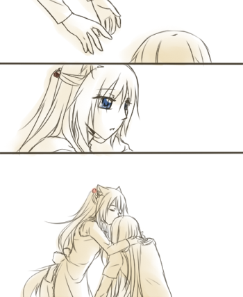 「嗯...雖然覺得打擾不太好,不過水響...可不可以請你別抱那麼緊?」