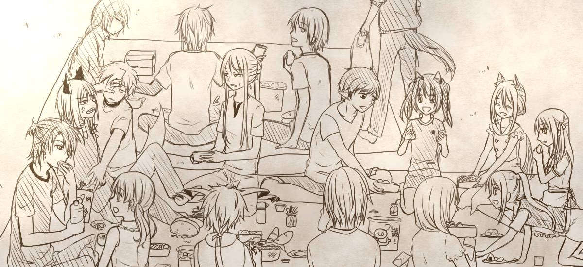 大家互相交換菜色聊著剛剛運動會的事情,吃飽的人就開始在旁邊嬉鬧著。